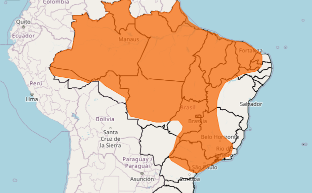 Esse alerta mais brando abrange uma área ainda mais ampla do país, incluindo trechos das regiões Sul, Sudeste e Nordeste, como áreas de Santa Catarina, Rio Grande do Sul, Bahia, Pernambuco e Alagoas.